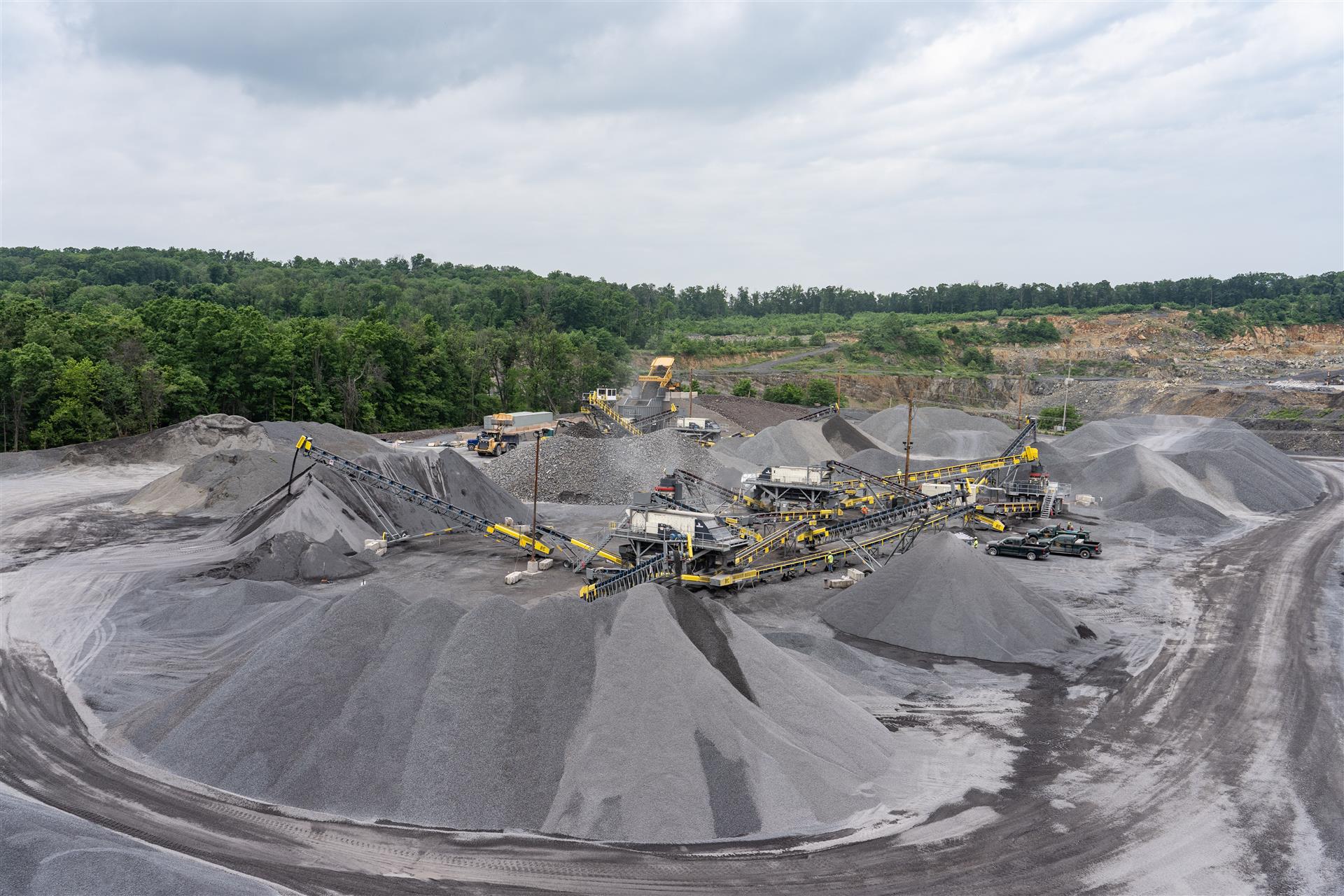 Quarry operation also features rail access for bulk material supply and/or delivery.